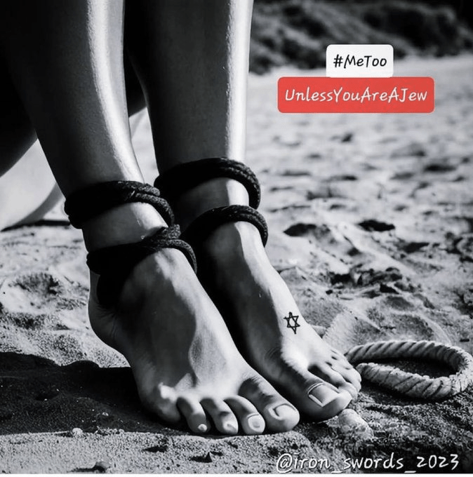 Jewish Women were tied to trees, their mouths blocked, while they were Raped and Tortured by Hamas on October 7th, just before they were Executed or burned alive. Women’s organizations around the world were completely silent about this and still are. Their Silence is deafening.