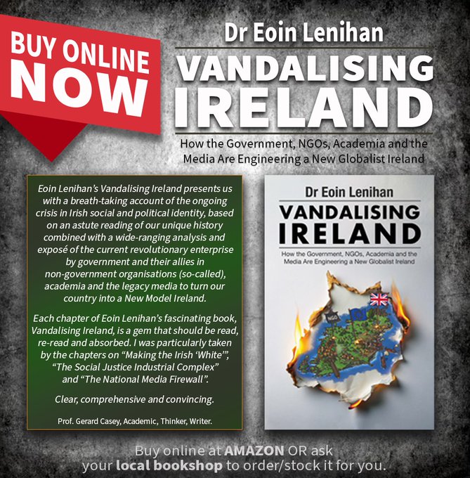 Good morning. Thanks to you, for a fourth day, Vandalising Ireland remains the No.1 book on Amazon Ireland. I’d like to share this review of the book by Professor Gerard Casey, one of Ireland’s leading academics and intellectuals.