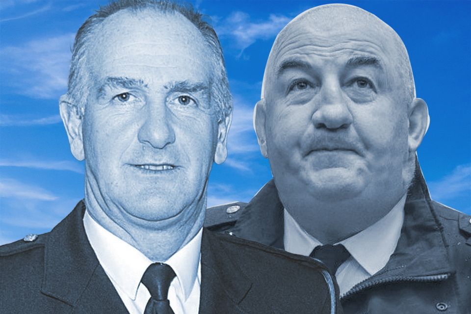 Superintendent Michael Comyns (left) and former superintendent John Quilter