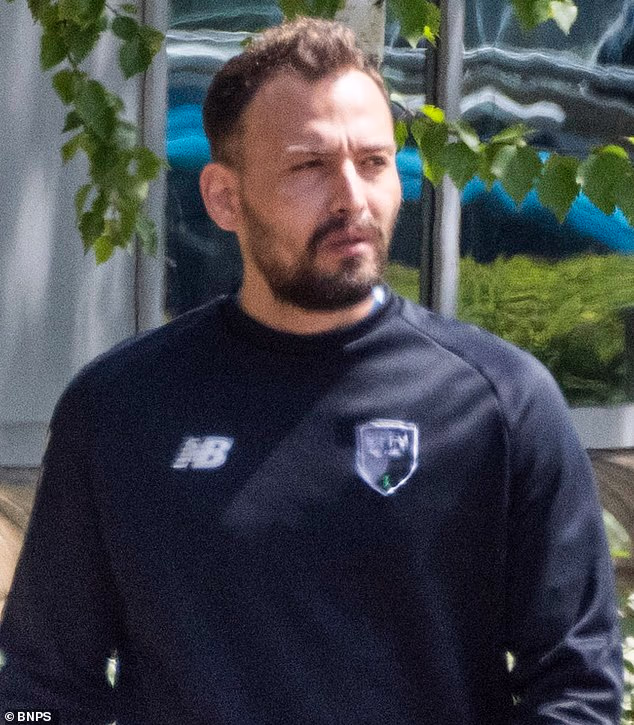 Tunisian migrant Houssine Nouira (pictured outside court wearing a black New Balance sweatshirt), 32, was sentenced to 12 months in jail back in May after he picked up part of the breakfast display and throwing it at staff