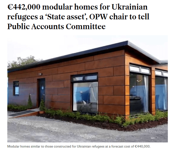€442,000 per modular home for asylum seekers here in Ireland. Its an absolute scam. We have Irish children dying waiting for scoliosis surgeries yet our government can spend billions on migrants with zero mandate