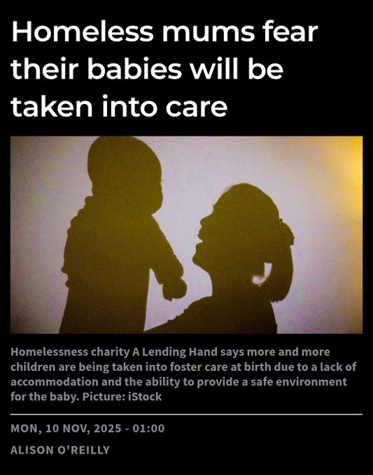 Homeless Mums Fear Their Babies Will Be Taken Into Care Growing numbers of new mothers are giving birth while living in fear their babies will be taken from them by social services because they are homeless. – Alison O’Reilly Figures from the Department of Housing show that, in September, 16,614 people were living in emergency accommodation, almost a third of them children.