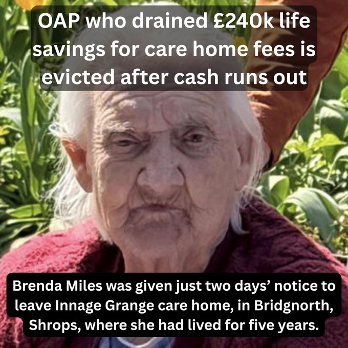 Heartbreaking: 98-year-old Brenda Miles, a lifelong UK Taxpayer, drained her entire £240k life Savings on care home fees for her Dementia—only to be evicted like yesterday’s Rubbish when the cash ran dry. Meanwhile, illegal Migrants flood in and get handed Free Hotels, NHS care, and Benefits on a silver platter. When do WE get Protected? STARMER SHOULD BE ARRESTED.