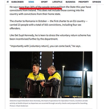 Remember chief supt Aidan Minnock at the start of the year telling us “asylum seekers are not criminals who pose a threat to public safery” Aidan now tells us that 30% of the asylum seekers deported in 2025 have criminal convictions in Ireland. That won’t help perceptions, Ade!