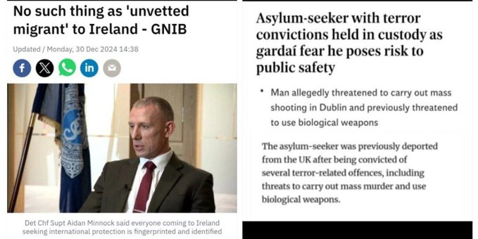 Head of the Garda National Immigration Bureau Chief superintendent Aidan Minnock has stated that 30% of the asylum seekers deported in 2025 have criminal convictions in Ireland. This contradicts his statement earlier in the year that there is no link between immigration and crime.