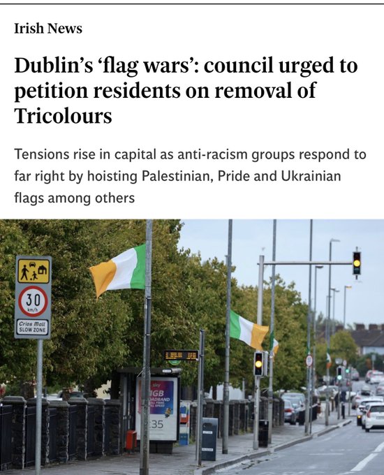 7 Dec, 2025 Uncategorized Anti-Irish groups are going around Dublin City and removing the Irish Tri colour and replacing it with Palestinian, pride and Ukrainian flags. These self admitted Racist groups have a deep seated Hatred for Ireland and Irish people. Posted by Fred Bassett Real News Éire @real_eire · 2h Share this: Share on X (Opens in new window) X Share on Facebook (Opens in new window) Facebook Share on LinkedIn (Opens in new window) LinkedIn Share on Reddit (Opens in new window) Reddit Email a link to a friend (Opens in new window) Email More Print (Opens in new window) Print Like Loading... Related