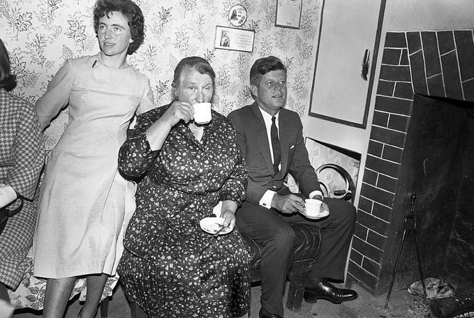 27 June 1963, President JFK visited Co Wexford, where some of his Ancestors had lived! Cousin Mrs Mary Ryan Greeted him with a Kiss! Tea, cake & salmon sandwiches! “I am proud to be here. It took 115 years to make this Trip