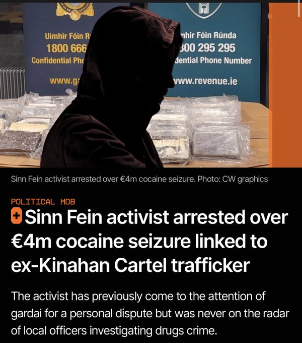 Sinn Fein recently had an activist arrested in connection with a plot to blow up a mosque in Galway. Today another activist has been arrested in connecting with the importation of a4 million in cocaine. Sinn Fein is filled with pedos, drug dealers and far right terrorist.