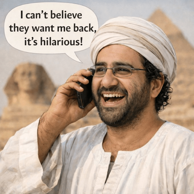 29 Dec, 2025 Uncategorized Alaa Abd El-Fattah spits in the face of our nation, our people, our weak politicians, and laughs at us. And so he should, because our weakness is pathetic, it deserves to be mocked. We are governed by spineless imbeciles. Posted by Fred Bassett Tommy Robinson @TRobinsonNewEra Share this: Share on X (Opens in new window) X Share on Facebook (Opens in new window) Facebook Share on LinkedIn (Opens in new window) LinkedIn Share on Reddit (Opens in new window) Reddit Email a link to a friend (Opens in new window) Email More Print (Opens in new window) Print Like Loading... Related