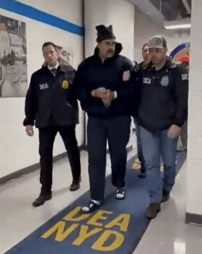 Ousted Nicolas Maduro being walked through New York after he was captured in a US special forces operation
