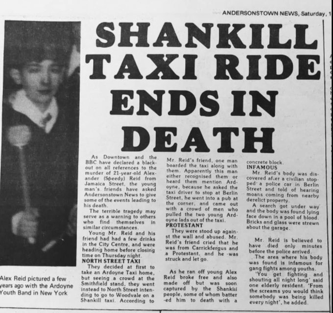 On this Day, 4th Jan. (1980). 21 year old Catholic Alexander Reid from Ardoyne was beaten to death by a mob of Loyalists when he made the fatal mistake of getting a Shankill rd taxi. His body was found by the RUC in a derelict garage, Berlin St. RIP Alex