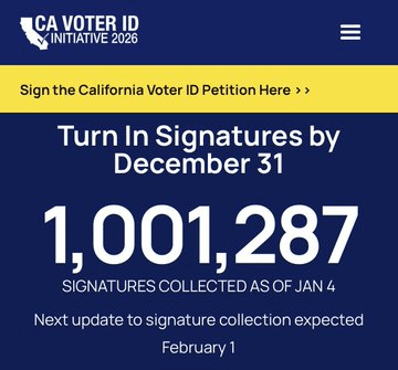 1 million signatures were just surpassed – and it needs around 200,000 thousand more! This would legally require: – Photo ID to vote – Verification of citizenship So NO MORE illegals voting. No more dead people voting. None of it. MAKE IT HAPPEN! All 50 states need voter ID to end fraud.