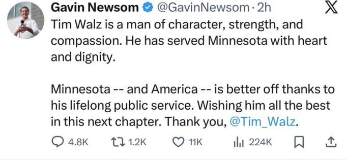 James Woods Only parasite Gavin Newscum could say Tim Walz is a man of integrity with a straight face. Vultures of a feather may stick together, but Grifter Gavin isn’t doing his laughable presidential campaign any favors giving a friendly reach around tug to a guy headed for life in prison.