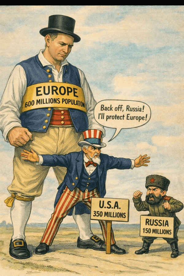 12 Jan, 2026 Uncategorized 600 million Europeans ask 350 million Americans to protect them from 150 million Russians. Europe is a sleeping giant Posted by Fred Bassett Share this: Click to share on X (Opens in new window) X Click to share on Facebook (Opens in new window) Facebook Click to share on LinkedIn (Opens in new window) LinkedIn Click to share on Reddit (Opens in new window) Reddit Click to email a link to a friend (Opens in new window) Email More Click to print (Opens in new window) Print Like Loading... Related
