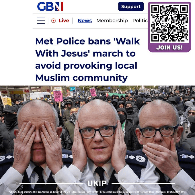 Hi @metpoliceuk you have banned @NickTenconi’s Walk For Jesus in Muslim Whitechapel. Why did you not ban Muslims praying in Christian Whitehall and Downing Street? More two-tier policing & Muslim intimidation?