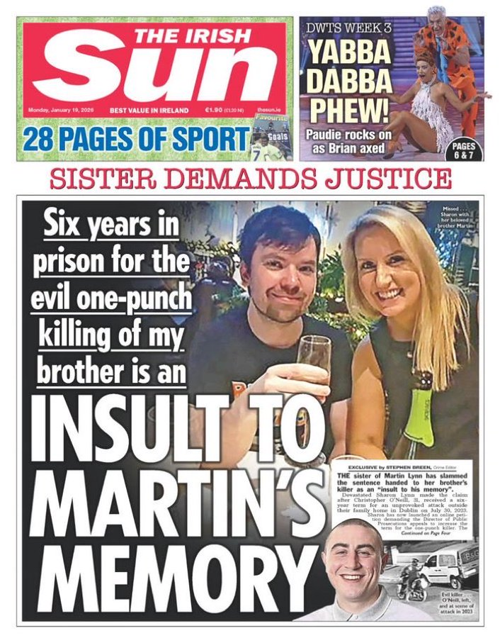 BREAKING – The family of Martin Lynn who was killed in an unprovoked attack just yards from his home were informed today that the Director of Public Prosecutions won’t be appealing the six year sentence his killer received. What an absolute disgrace.