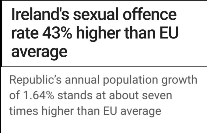 A new report comparing Ireland’s justice system to other countries has shown the average number of sexual offences reported here between 2019 and 2023 was 43% higher than the EU average. This coincides with population growth 7 times higher than the EU average, driven by migration.