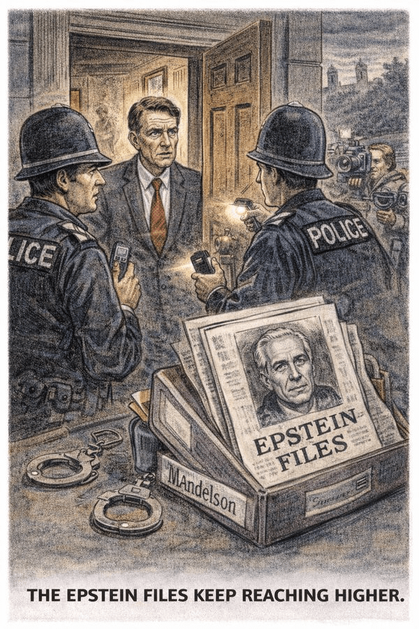 7 Feb, 2026 Uncategorized BREAKING: UK police have executed search warrants at the homes of former ambassador Peter Mandelson in connection with the Jeffrey Epstein investigation. Posted by Fred Bassett THE JEFFREY EPSTEIN STORY JUST WON’T GO AWAY. Share this: Share on X (Opens in new window) X Share on Facebook (Opens in new window) Facebook Share on LinkedIn (Opens in new window) LinkedIn Share on Reddit (Opens in new window) Reddit Email a link to a friend (Opens in new window) Email More Print (Opens in new window) Print Like Loading... Related