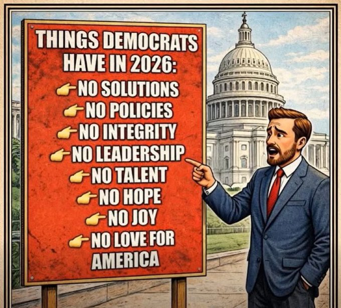 7 Feb, 2026 Uncategorized Hating Trump is all Democrats have. Posted by Fred Bassett Share this: Share on X (Opens in new window) X Share on Facebook (Opens in new window) Facebook Share on LinkedIn (Opens in new window) LinkedIn Share on Reddit (Opens in new window) Reddit Email a link to a friend (Opens in new window) Email More Print (Opens in new window) Print Like Loading... Related
