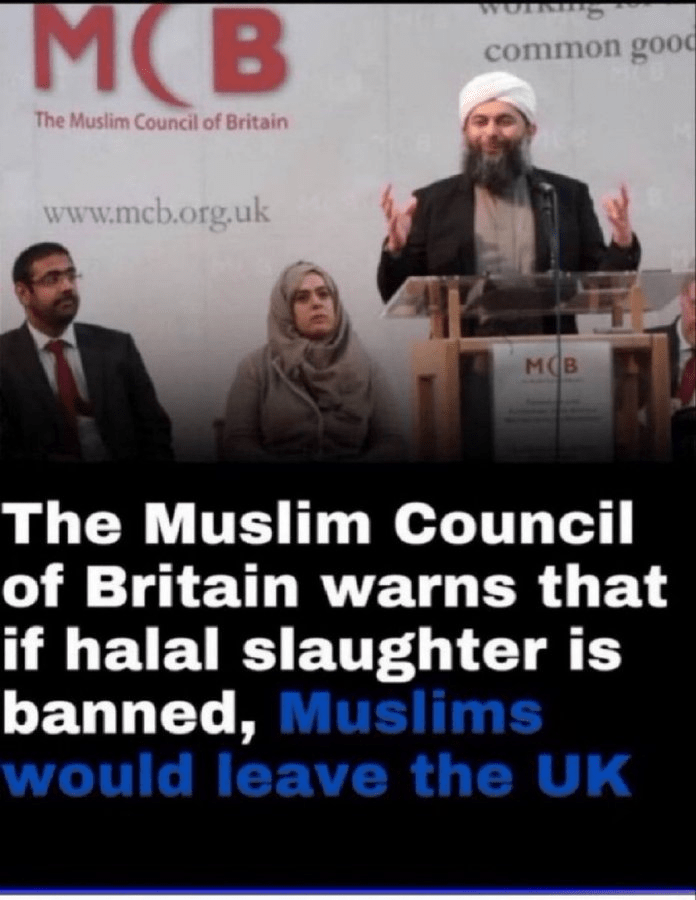 12 Feb, 2026 Uncategorized Seems logical Posted by Fred Bassett The Muslim Council of Britain warns that Banning Halal Slaughter would force many Muslims to leave the country. What is your REACTION to this? Benonwine @benonwine Share this: Share on X (Opens in new window) X Share on Facebook (Opens in new window) Facebook Share on LinkedIn (Opens in new window) LinkedIn Share on Reddit (Opens in new window) Reddit Email a link to a friend (Opens in new window) Email More Print (Opens in new window) Print Like Loading... Related