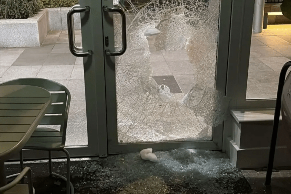 Additionally, they asked customers to “bear with” staff as work gets underway to repair the glass doors.