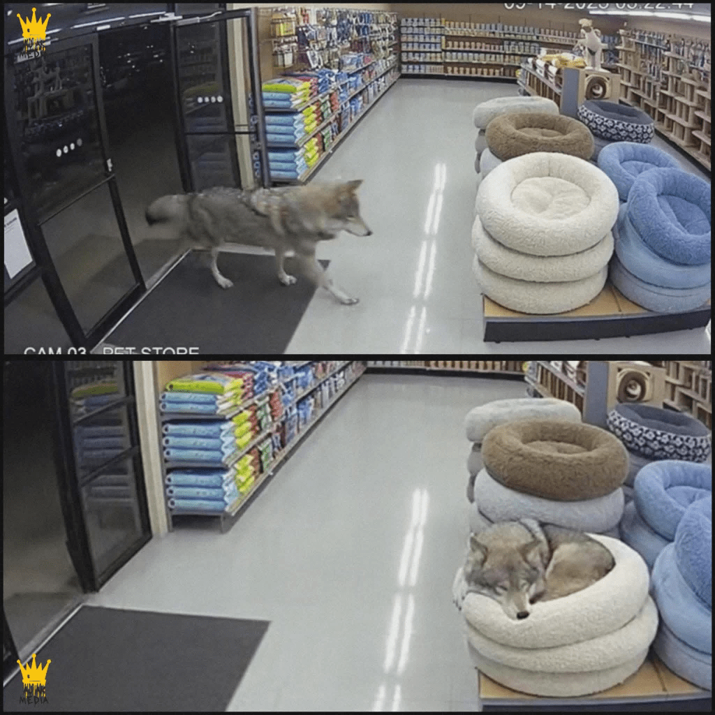 Late one night in Oregon, a pet store was quiet and nearly empty when the security guard noticed movement near the entrance. At first glance it looked like a large husky that had slipped inside, but the longer he watched, the more he realized it wasn’t a lost pet. The build was bigger, the posture was different, and the eyes looked unmistakably wild. The wild part is what it did next.